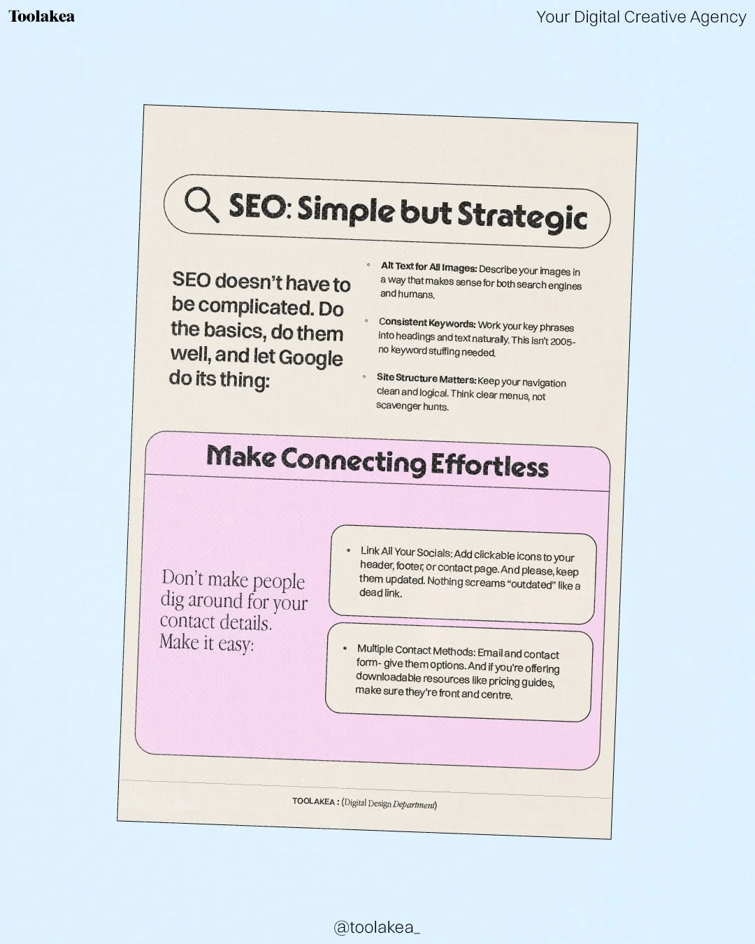 Founded by Carly and based in Naarm/Melbourne, Toolakea is a creative studio offering design support with clarity and consistency.